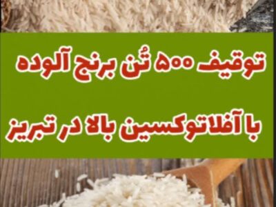 توقیف ۵۰۰ تُن برنج آلوده با آفلاتوکسین بالا در تبریز
